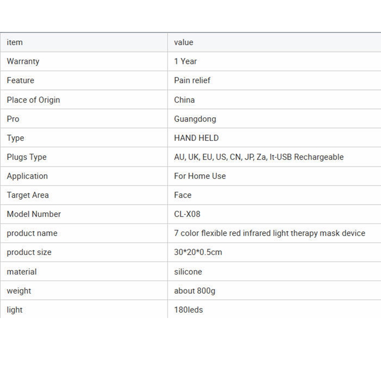 BuQırmızı LED işıq terapiyası üz maskası7 rəngdə hazırlanmışdır. Öz ehtiyaclarınıza görə rəngini dəyişdirə bilərsiniz.